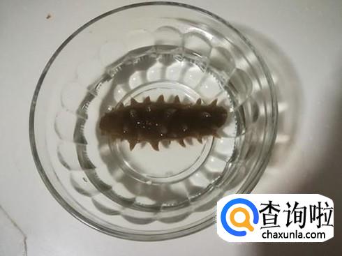 把在冰箱里冷冻的即食海参拿出来放碗里,加水消开。