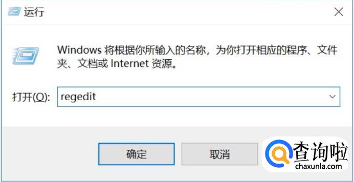 同样是使用 Windows + R 组合快捷键呼出,运行操作框,然后键入 regedit 并点击下方的确定,打开注册表,如图所示。