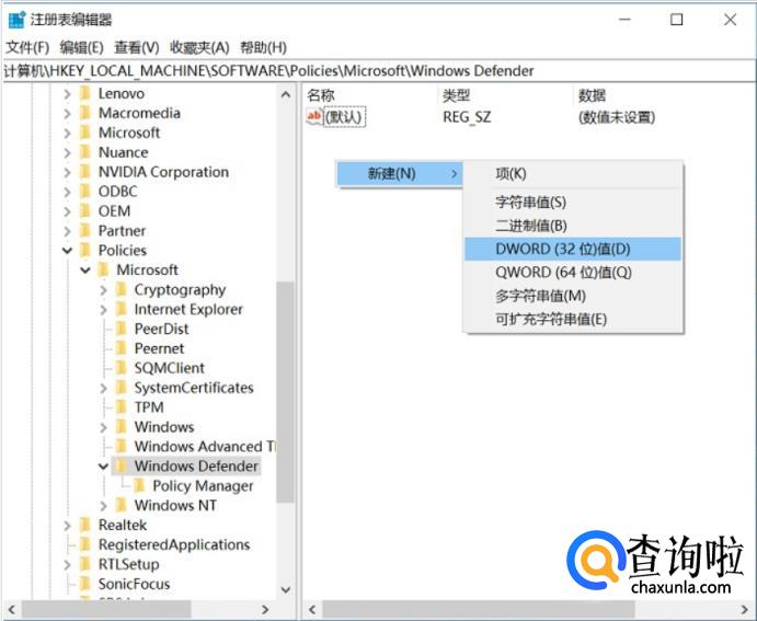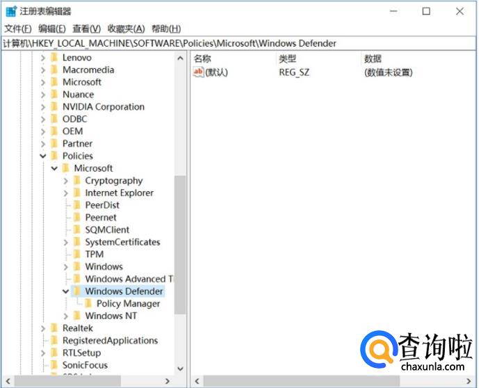但是由于Win10家庭版没有组策略编辑器,因此无法通过上面的方法关闭。对于Win10家庭版用户来说,可以通过注册表来关闭Win10自带的杀毒软件,方法如下。