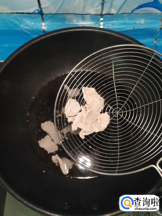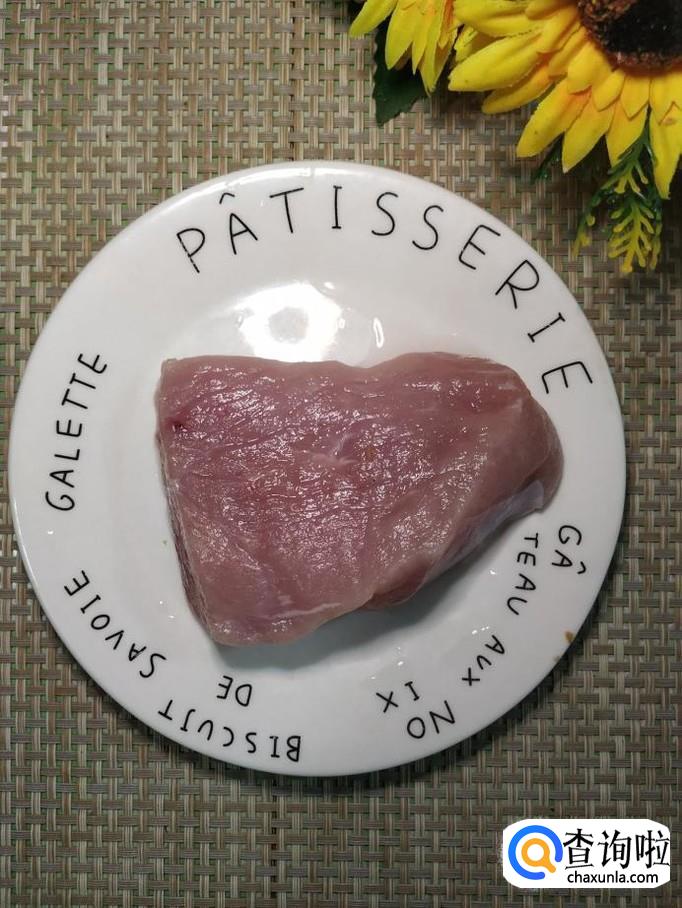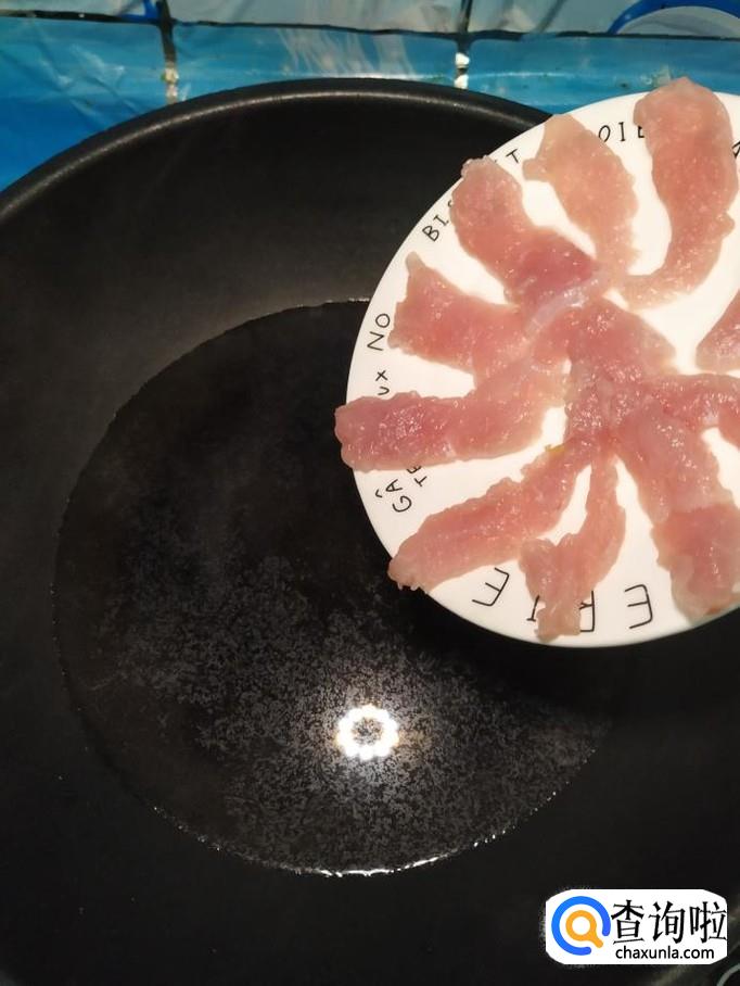 准备适量猪里脊肉,洗净后,切成薄片,放入锅中焯水,焯好之后,迅速捞出备用。