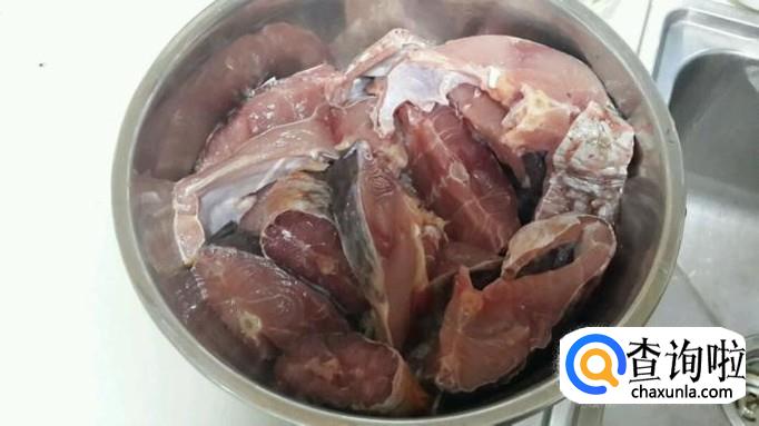将鱼处理一下,去掉鱼鳃,去掉鱼鳞,然后剁成大块,如果不会处理的话,可以买鱼的时候让老板帮忙处理好。