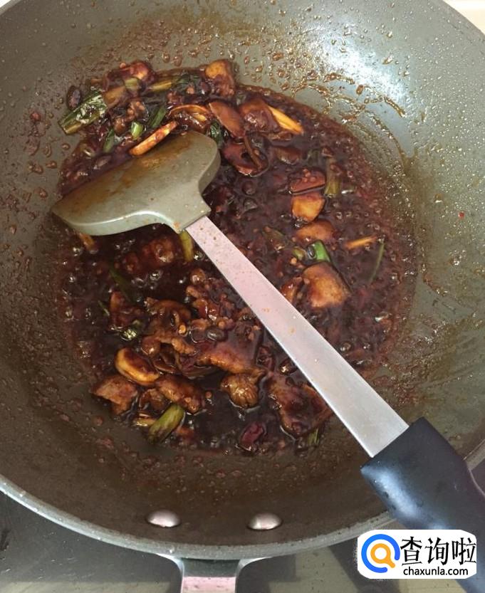 锅中放入适量植物油油热后倒入葱姜,然后倒入半勺豆瓣酱,一小块火锅底料,炒出香味,放入剁好的鱼块,再加入适量水,水没过鱼。