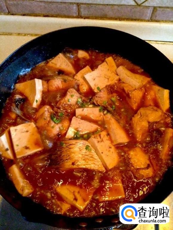 草鱼一条 豆腐一块 葱姜适量 豆瓣酱适量 火锅底料适量 白糖适量