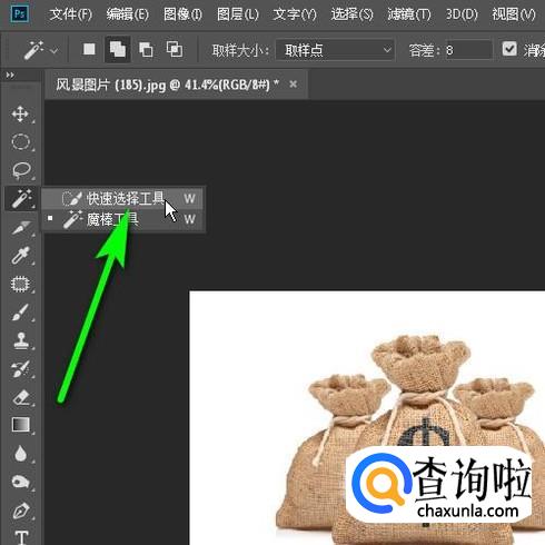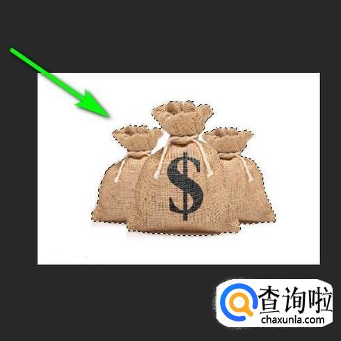 再放开鼠标,那么,图片即拉入到PS中。接下来,要把图片中三个钱袋给抠出来。