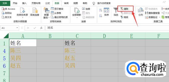 筛选出来的A列就是我们想要重复姓名的结果为方便观察,我们把A列筛选出来的结果填充橙色