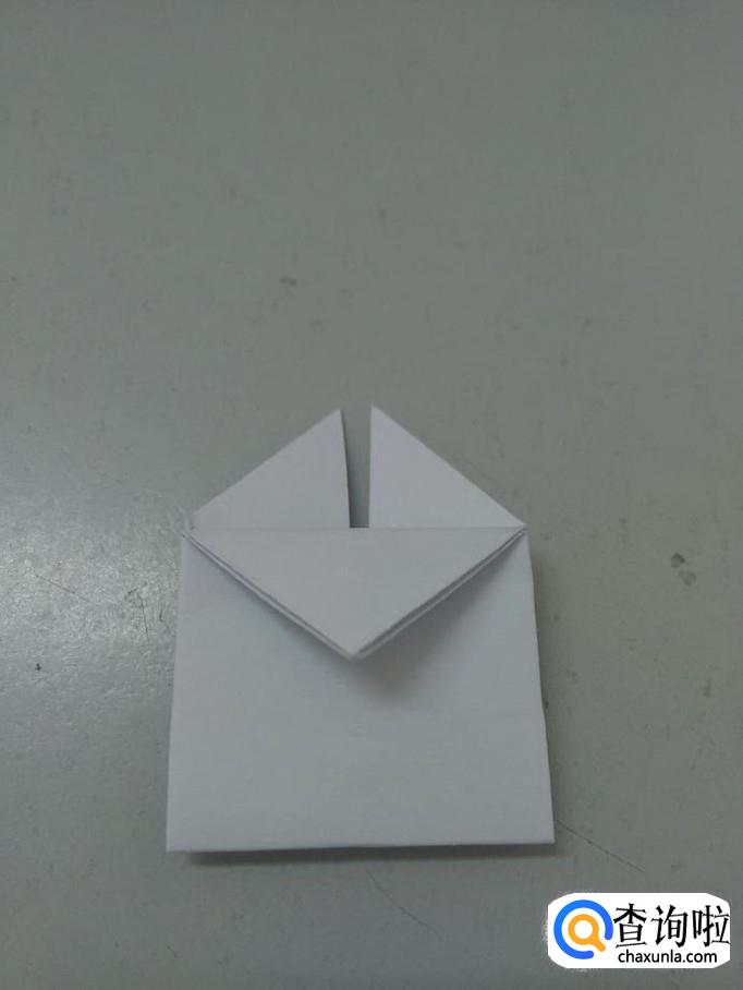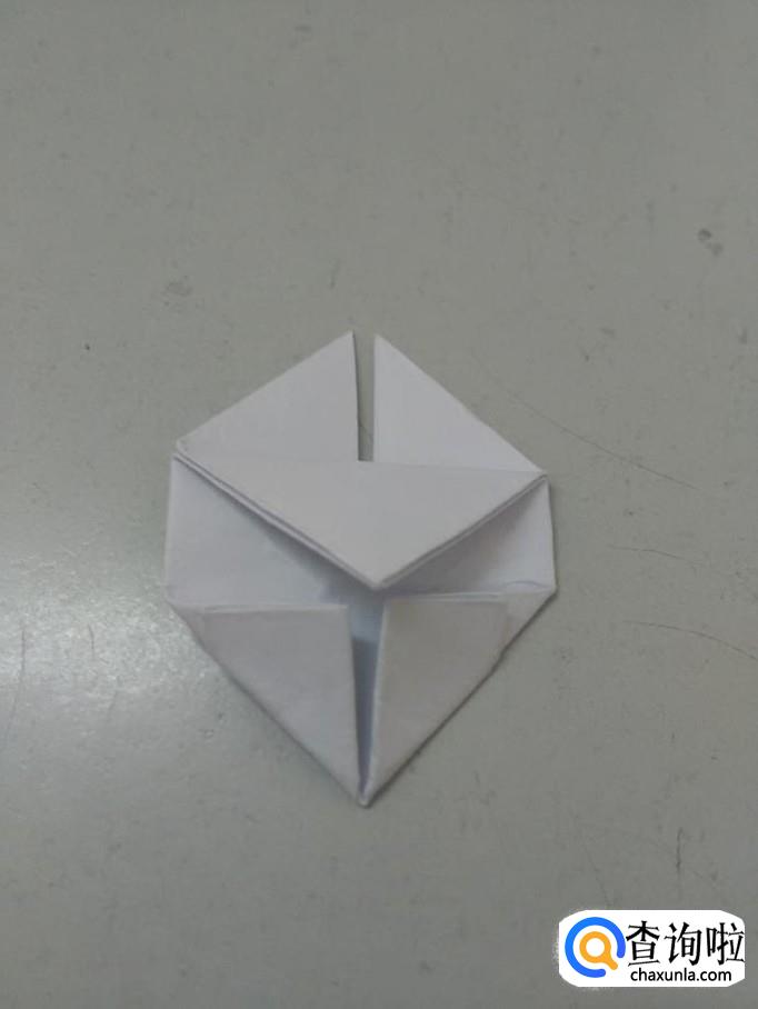 以对角线的交叉点为对称轴,将上面的边向下对折。