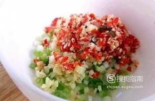 将小葱和辣椒细细的切碎,放入碗中备用。
