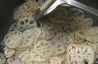 起锅烧油,油热后倒入藕片开大火翻炒。