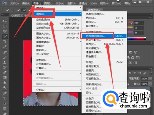 - 07                                                                                                            点击图像中的调整,找到色相/饱和度,并且点击。