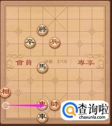 我们接着来走第二步,红方车右走3步,如图所示。