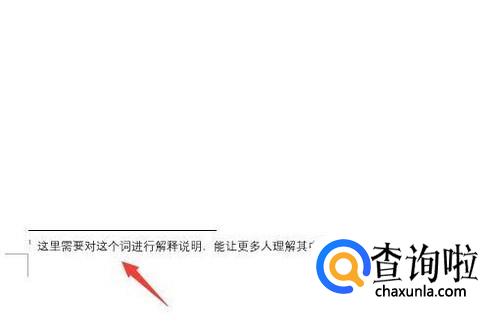 添加相应的脚注内容。当插入脚注以后,可以在文档的末尾就看到有一个很小的1,然后在这里编写相关的文字说明就可以了。