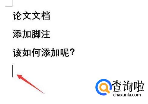 打开文档,然后在里面添加一些内容以后,然后在需要添加脚注的地方点击,直接点击末尾就可以了,如图所示。