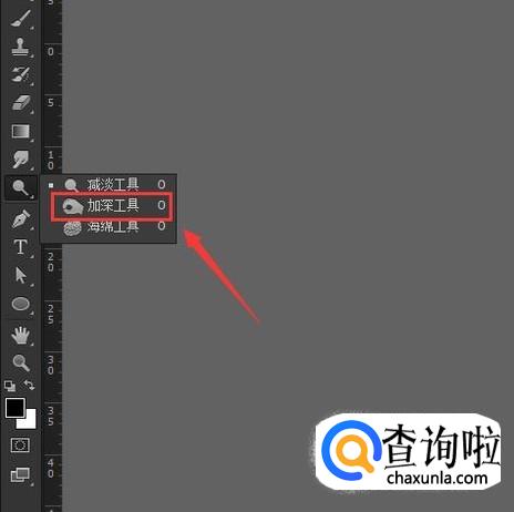 我们在工具箱内点击减淡工具不要松开鼠标左键在下拉菜单那里找到找到加深工具,如图所示: