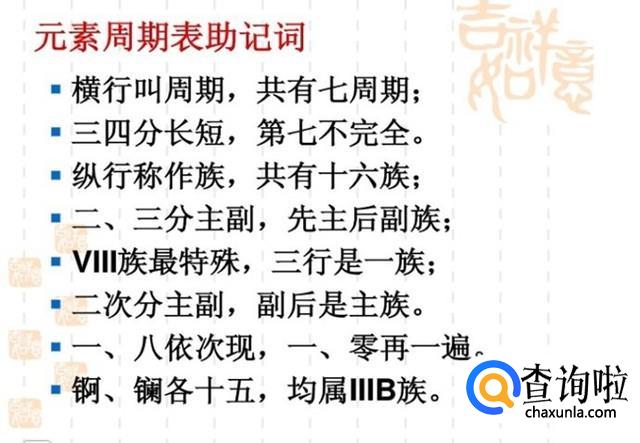 元素周期表口诀