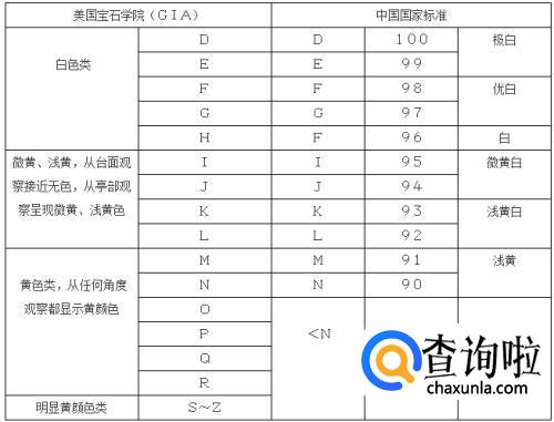 钻石不单单是白色,它还分为其它颜色,按照等级划分为D、E、F、G、H、I、J、K、L、M、N。其中D、E、F属于透明无色的,非常稀有珍贵,它们之间的区分要靠专家仔细的分辨力。G至L是较为普遍的颜色,日常生活中购买的钻戒大多属于这些颜色。M为微黄色,接近无色,一般人很难区分。M以下的就是淡黄色,也很好区分,价格相比其它就便宜多了。