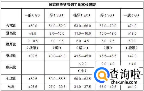 切工是指成品裸钻各种瓣面的几何形状及排列方式,切工分为切割比例,抛光,修饰度三项。每一项都有五个级别,由高到低依次是EXCELLENT,VERYGOOD,GOOD,FAIR,POOR.一般所见都是标准圆钻型切工。顶级切工的石头,对于光线反射可以达到一个最接近完美的比例,也就是三项E X(EXCELLENT)切工,但是像这种切工价钱也稍微贵一些,因为它的出成率比较低,比不是三项EX切工的价钱高5%左右,但三项EX的石头色彩绝对是最绚丽的.在4C标准的其他三项一定的情况下,切工的好坏也很重要!切工好了,钻石的火彩也由此得以绽放。