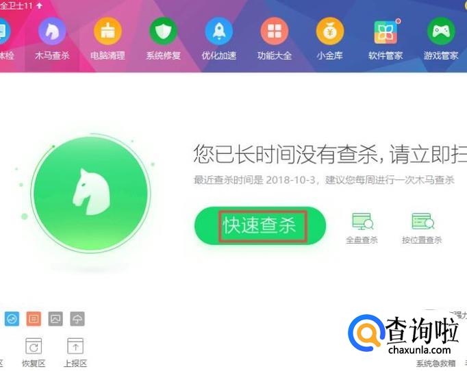 弹出的界面,我们点击快速查杀;