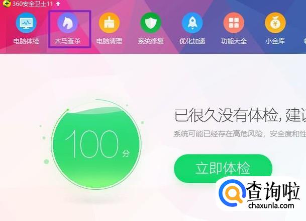 弹出的界面,我们点击木马查杀,如图所示;
