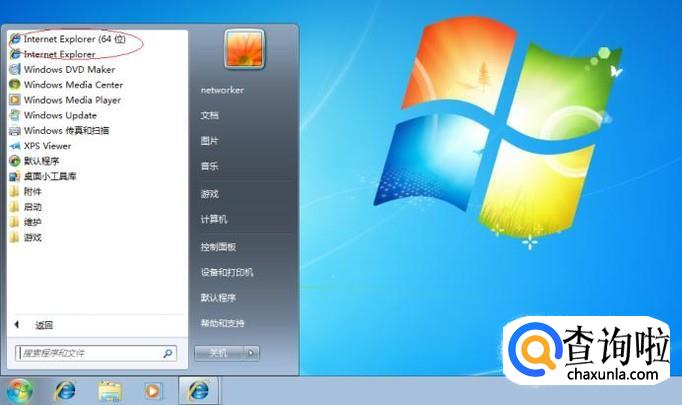 如图所示,开始菜单选择"所有程序"图标。点击"Internet Explorer(64位)"项,用于访问无线路由器WEB管理页面。