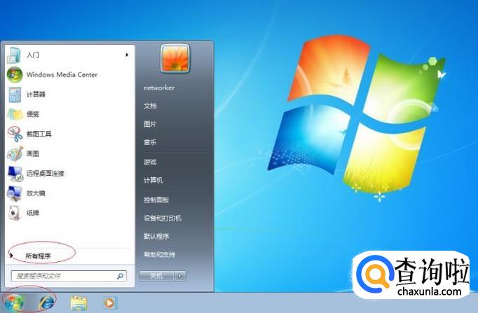 启动Windows 7操作系统,如图所示。点击任务栏"开始"按钮,用于弹出开始菜单。