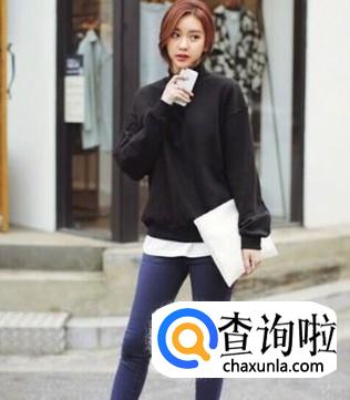 卫衣+紧身牛仔裤