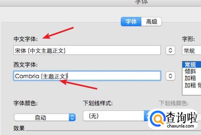 弹出字体对话框,在这里就可以看到可以分别设置中文字体和西文字体的。